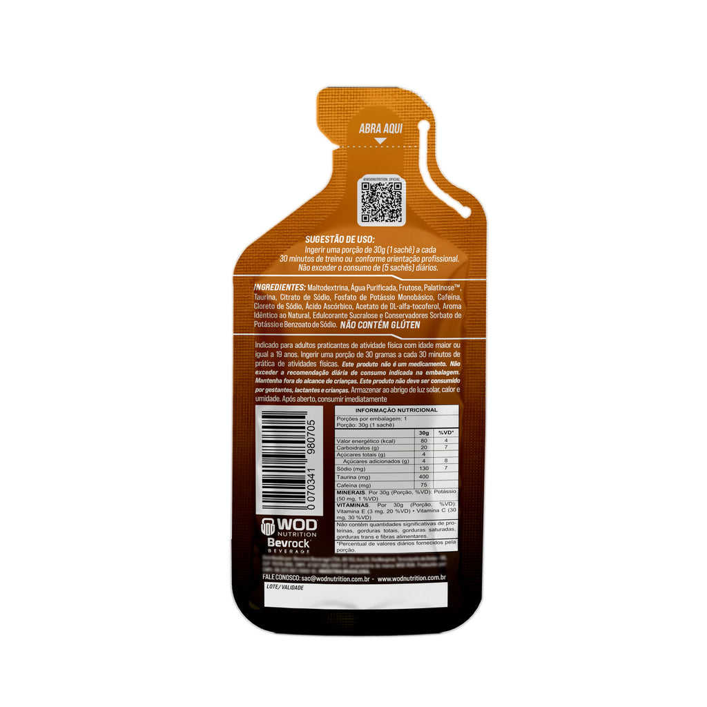 WOD RUN ENERGY GEL + CAFEÍNA E TAURINA foi criado para quem vive corrida, trilha, mountain, subida, sol na cara e suor na pele. A combinação de maltodextrina, frutose e isomaltulose (Palatinose®) garante um fluxo gradual, estável e eficiente de energia, com excelente tolerância gastrointestinal mesmo em provas longas.
