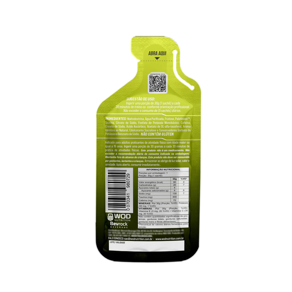 WOD RUN ENERGY GEL + CAFEÍNA E TAURINA foi criado para quem vive corrida, trilha, mountain, subida, sol na cara e suor na pele. A combinação de maltodextrina, frutose e isomaltulose (Palatinose®) garante um fluxo gradual, estável e eficiente de energia, com excelente tolerância gastrointestinal mesmo em provas longas.