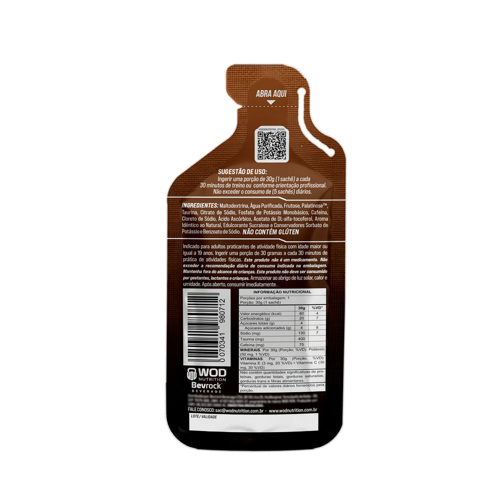 WOD RUN ENERGY GEL + CAFEÍNA E TAURINA foi criado para quem vive corrida, trilha, mountain, subida, sol na cara e suor na pele. A combinação de maltodextrina, frutose e isomaltulose (Palatinose®) garante um fluxo gradual, estável e eficiente de energia, com excelente tolerância gastrointestinal mesmo em provas longas.